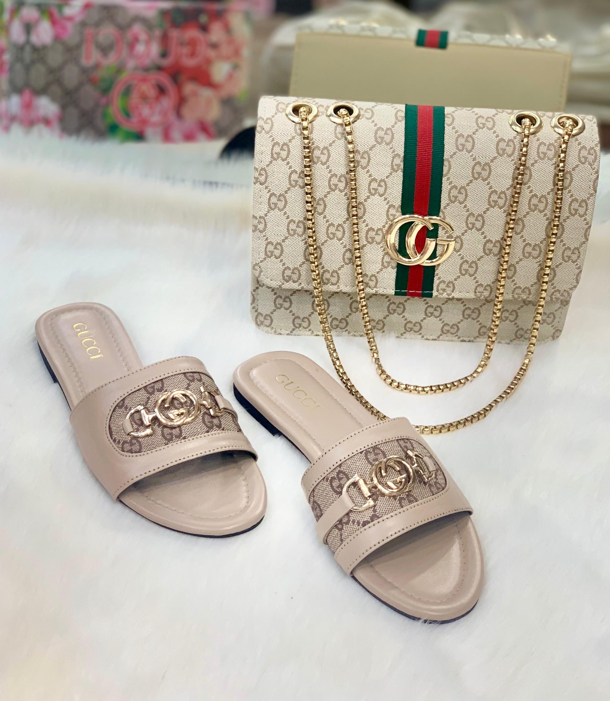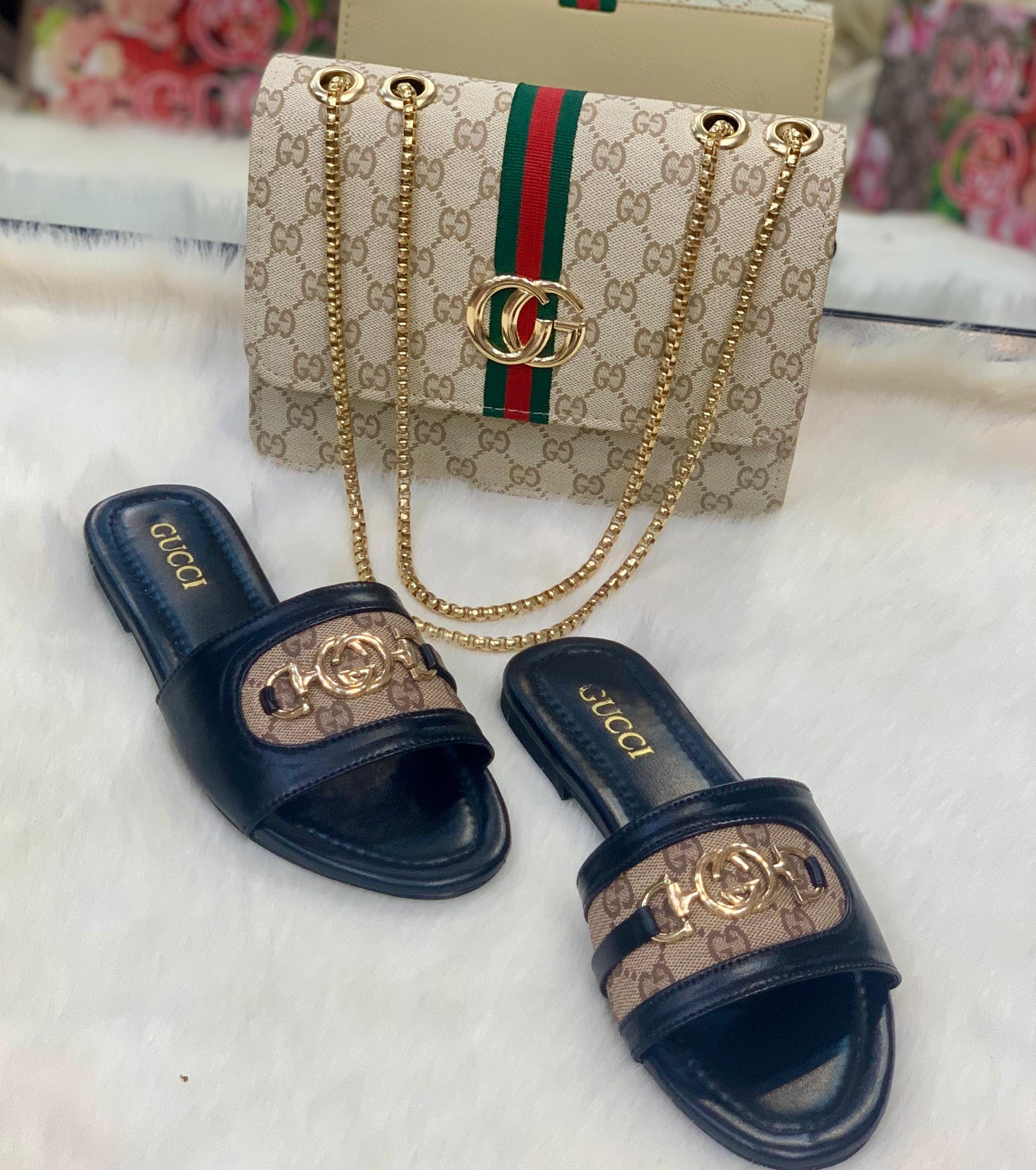 Experience luxury and comfort with the Gùççì Combo Set. This stylish combo includes a spacious bag and comfortable slipper, perfect for any occasion. Make a statement with this must-have set. Elevate your style and indulge in the ultimate convenience.